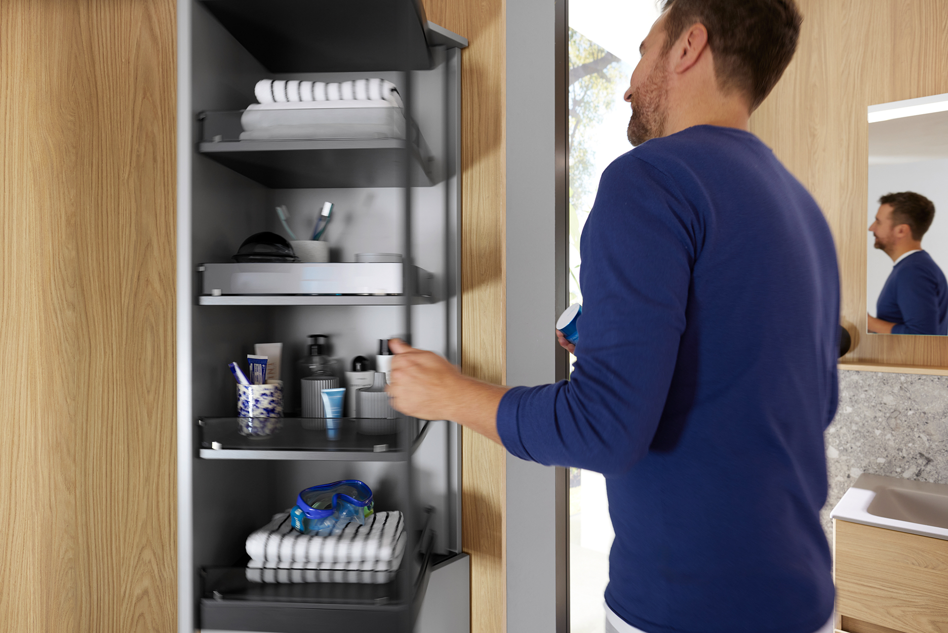 Optimierter Stauraum: innovative Mechanik holt die hinterste Ecke nach vorne